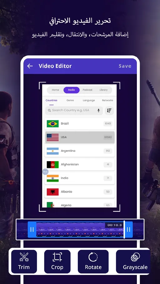 عند حدوث أي مشكلة أثناء التسجيل لا تقلق من إعادة البدء في التسجيل مرة أخرى وذلك لوجود خاصية متميزة وفريدة تسمح لك بتعديل مقاطع الفيديو التي تم تسجيلها على تطبيق EZ Screen Recorder مهكر حيث يتوفر عدد كبير من أدوات التحرير المتطورة التي تغني تماماً عن إستخدام أي تطبيقات خارجية التي يحتاجها المستخدم في تعديل الفيديوهات, وذلك توفيراً للوقت والجهد وتتمثل هذه الأدوات في :