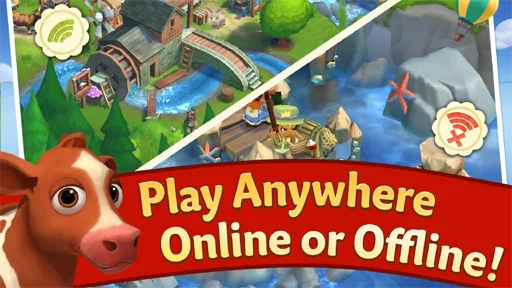 ولعبة محاكاة الزراعة FarmVille 2 Country Escape مهكرة تدعم العمل في وضع الاوفلاين وبالتالي لا تحتاج لتوفير الإنترنت على الهاتف لكي تتمكن من تشغيلها لكن توجد مجموعة من الخدمات التي تحتاج لتوفير الإنترنت لكي تستمتع بها مثل الدردشة مع الأصدقاء والقيام بتبادل المحاصيل والبذور والمعدات فيما بينكم.