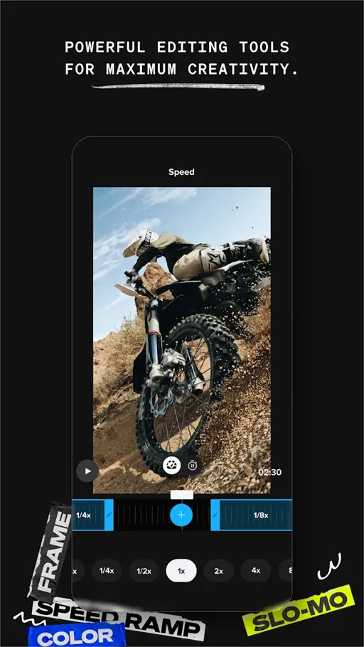 من الأمور المميزة بعد تحميل برنامج GoPro Quik مهكر اخر اصدار أن هٌناك للمستخدم إمكانية الحصول على مقاطع فيديو إحترافية وذلك لأنه يتمتع بعدة أدوات تحرير مختلفة منها الفلاتر والتأثيرات التي تعطي طابع مختلف وألوان زاهية مختلفة, وبجانب ذلك يستطيع التحكم في الأبعاد حتى يتم التمكن من مشاركة هذه المشاريع عبر جميع المنصات التي تكون ملتزمة بأبعاد معينة.