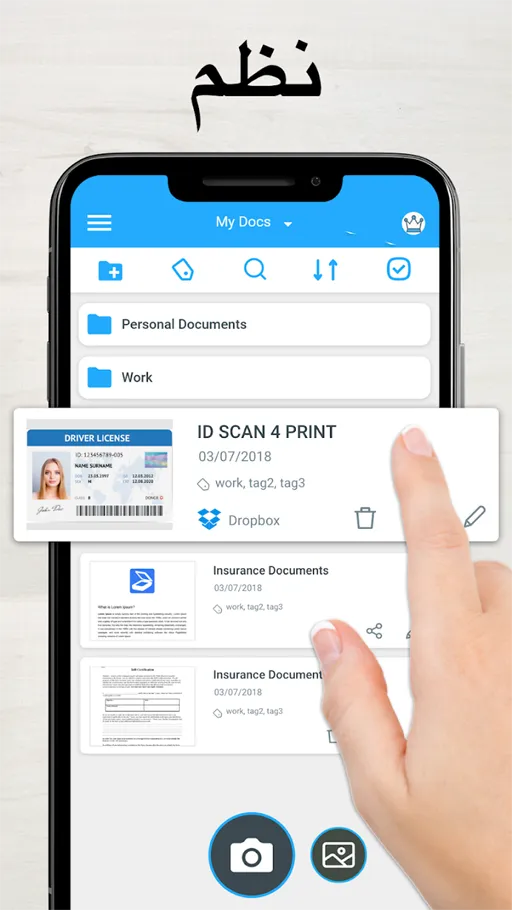 - معرف المسح : تطبيق Tap Scanner مهكر اخر اصدار يمتلك أيضا ميزة معرف المسح التي تجعلك تتمكن من مسح البطاقة الشخصية أو جواز السفر الخاص بك, وبالتالي تتمكن من إضافة هذه الصور التي تقوم بمسحها للمستندات الخاصة بك بكل إحترافية.